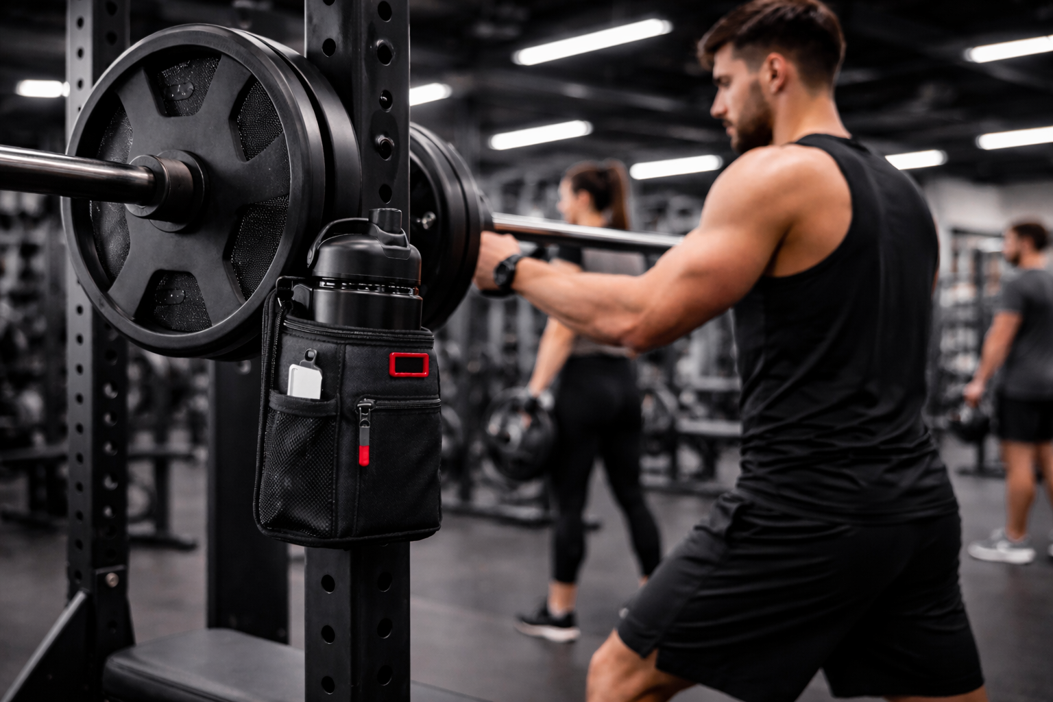 Our magnetic gym bottle bag snaps securely onto any metal rack or machine, keeping your water, phone, and essentials off the floor and within arm’s reach,so you can focus on your workout, not your stuff.